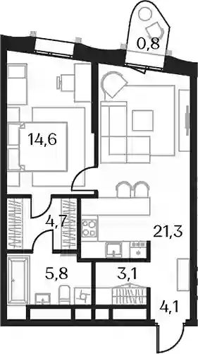 35 508 660 ₽2-к.квартира, 47.6 м², 20 эт.