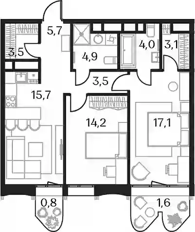 В жилом кластере «Союз» предложено 27 видов планировочных решений площадью от 29,4 до 186 кв. метров, включая квартиры с террасами, мастер спальней и просторные пентхаусы на трех последних этажах. Сдаются они без отделки, с высокими потолками от 3,02 до 4 метров. Большинство квартир спроектировано с входом «на свет». В каждой квартире предусмотрены балконы: на нижних этажах— французские, до 1,5 кв. метров, на верхних — торцевые, с прозрачным остеклением и реечным ограждением.