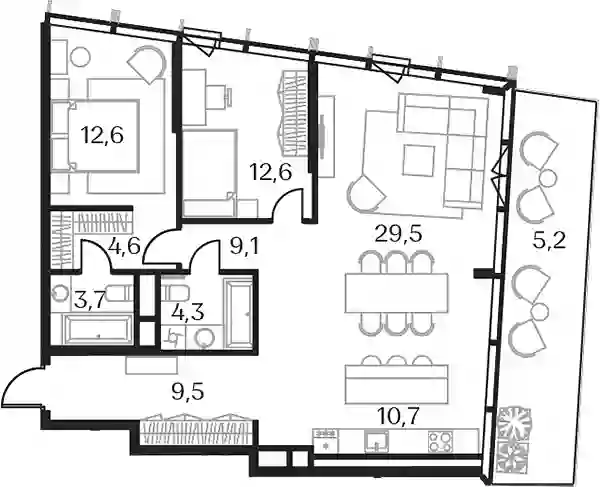 116 694 580 ₽3-к.квартира, 96.6 м², 21 эт.