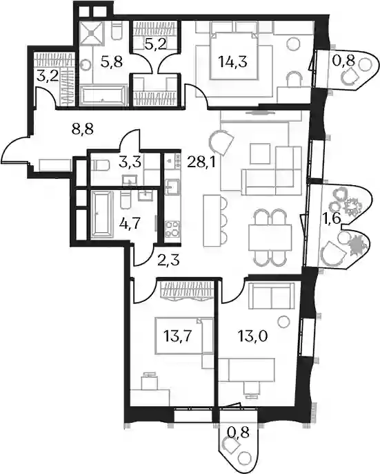 48 888 640 ₽3-к.квартира, 71.8 м², 13 эт.