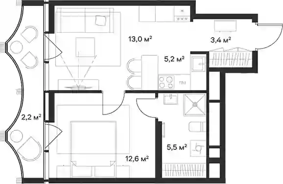 26 981 880 ₽2-к.квартира, 42.8 м², 10 эт.