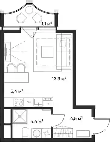 20 124 520 ₽Студия, 30.8 м², 3 эт.