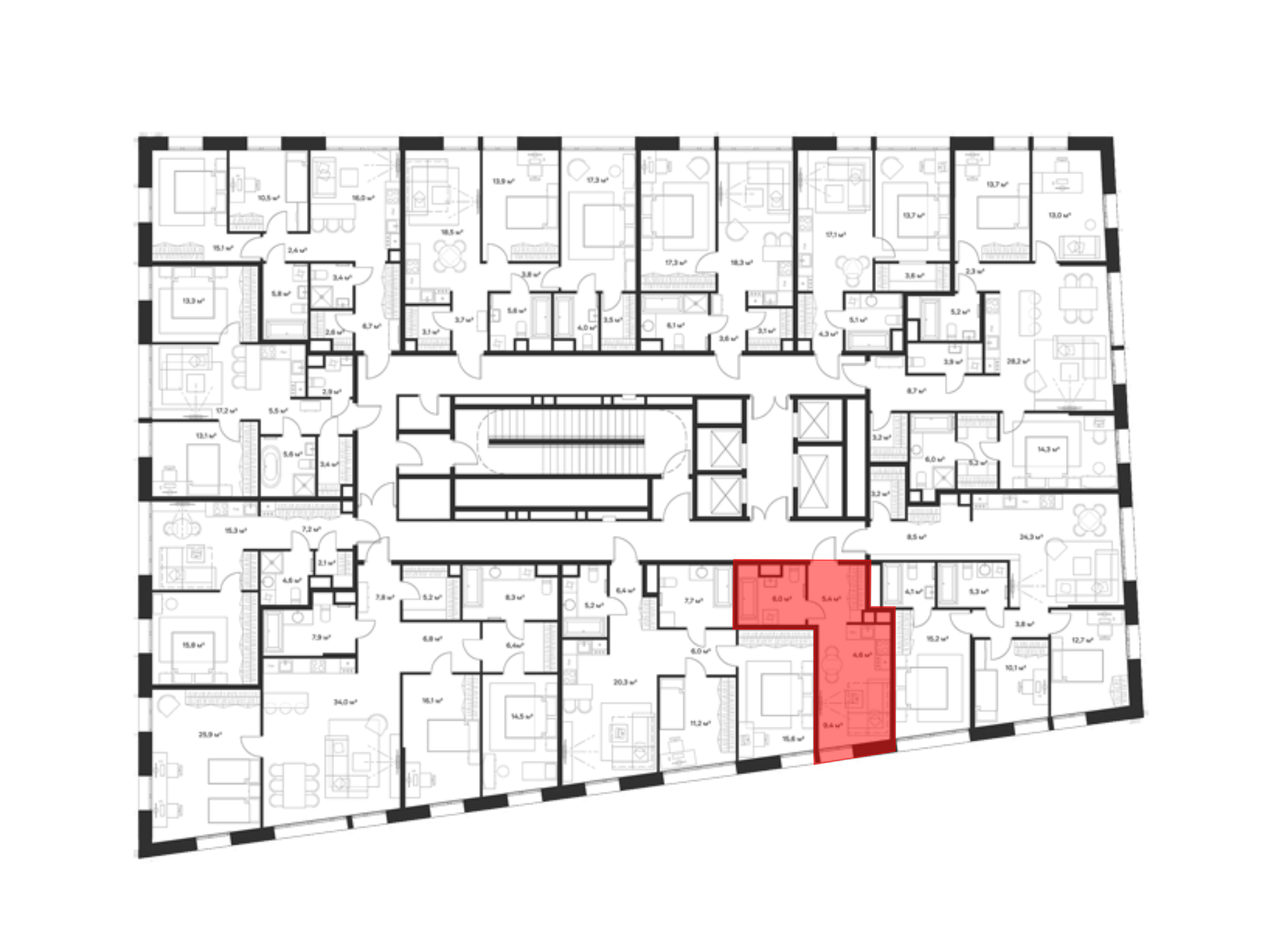 В комплексе предложен широкий выбор планировочных решений от студий до 5-ти комнатных квартир. Также доступны уникальные форматы: квартиры с панорамными гостиными и террасами. Все квартиры сдаются без стен, что открывает возможности для индивидуального оформления. Высота потолков составляет 2,8 метра, а окна — панорамные и увеличенные.