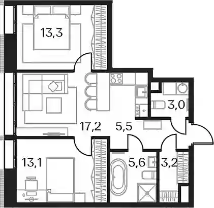 48 563 240 ₽3-к.квартира, 71.1 м², 13 эт.