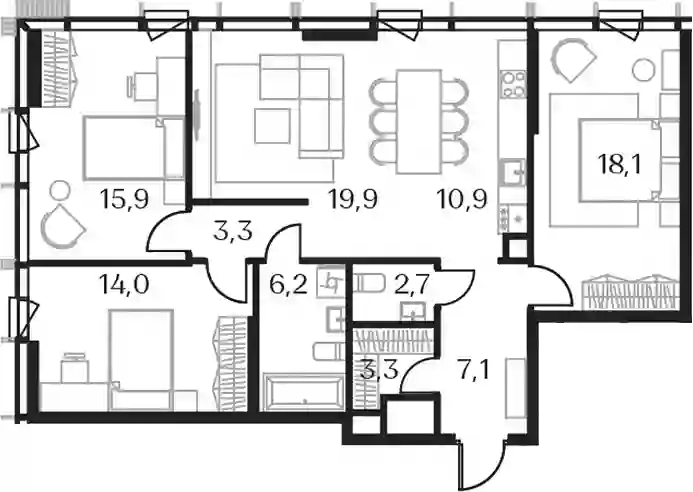 49 184 310 ₽3-к.квартира, 71.4 м², 17 эт.