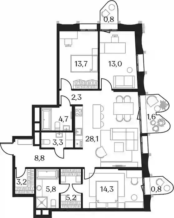92 343 680 ₽5+к.квартира, 124.7 м², 18 эт.
