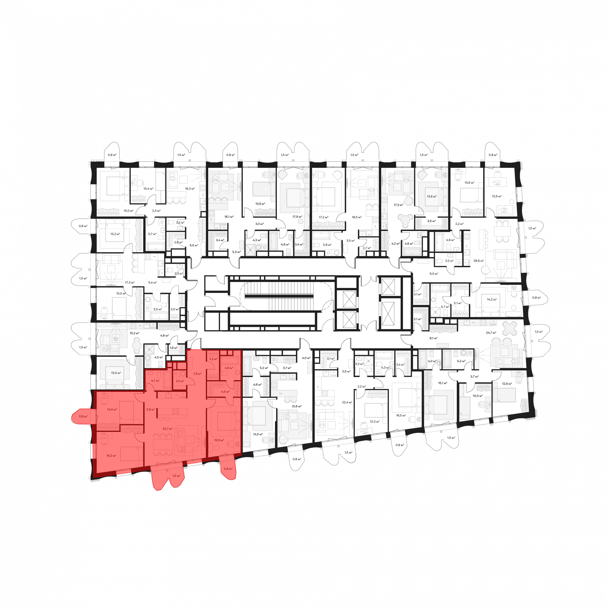 В комплексе предложен широкий выбор планировочных решений от студий до 5-ти комнатных квартир. Также доступны уникальные форматы: квартиры с панорамными гостиными и террасами. Все квартиры сдаются без стен, что открывает возможности для индивидуального оформления. Высота потолков составляет 2,8 метра, а окна — панорамные и увеличенные.
