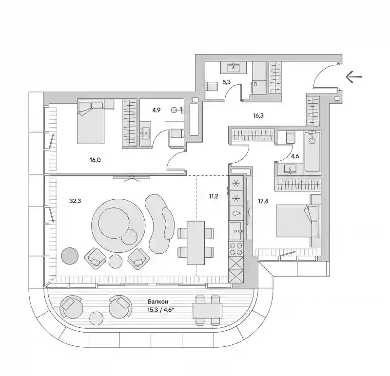 3-к.квартира, 104.9 м², 11 эт. в ЖК Springs Корпус 1