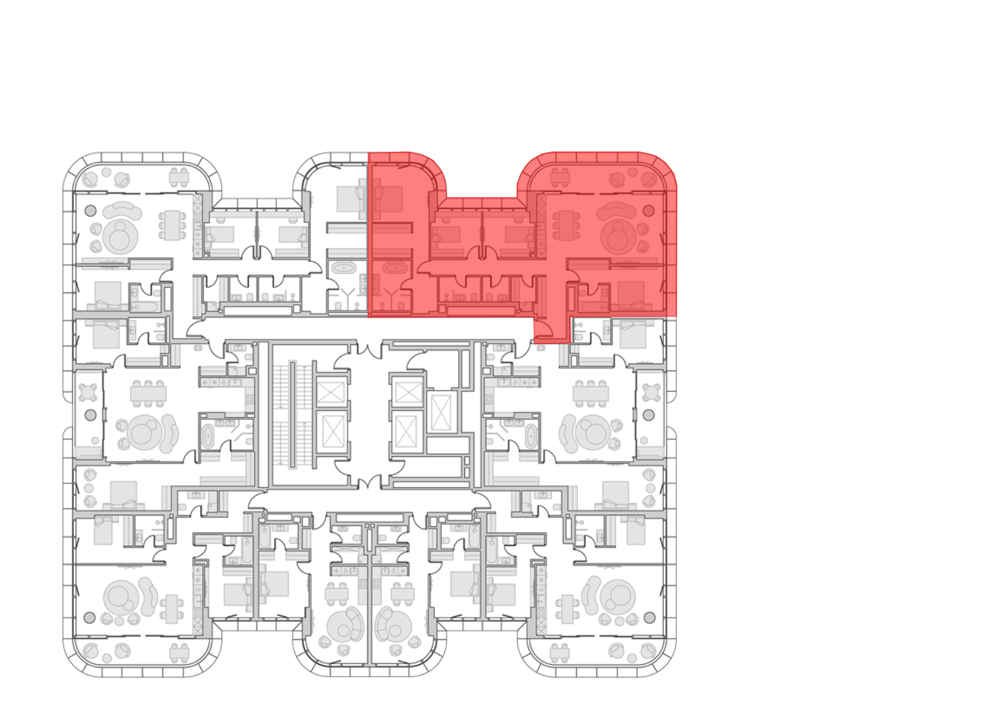 В комплексе представлены квартиры с 2–5 комнатами, а также таунхаусы с патио и двухуровневые пентхаусы с собственными террасами. В помещениях установлены панорамные окна, высота потолков варьируется от 3,1 до 4,5 м в зависимости от этажа. С северной стороны открываются живописные виды на парк Фили. Уникальной особенностью является трансформируемое остекление балконов, что позволяет складывать конструкции летом и оставлять закрытыми зимой. В квартирах выполнена дизайнерская отделка в утонченной сдержанной палитре от студии QuadroRoom.