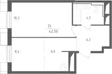 14 034 127 ₽2-к.квартира, 41.48 м², 6 эт.