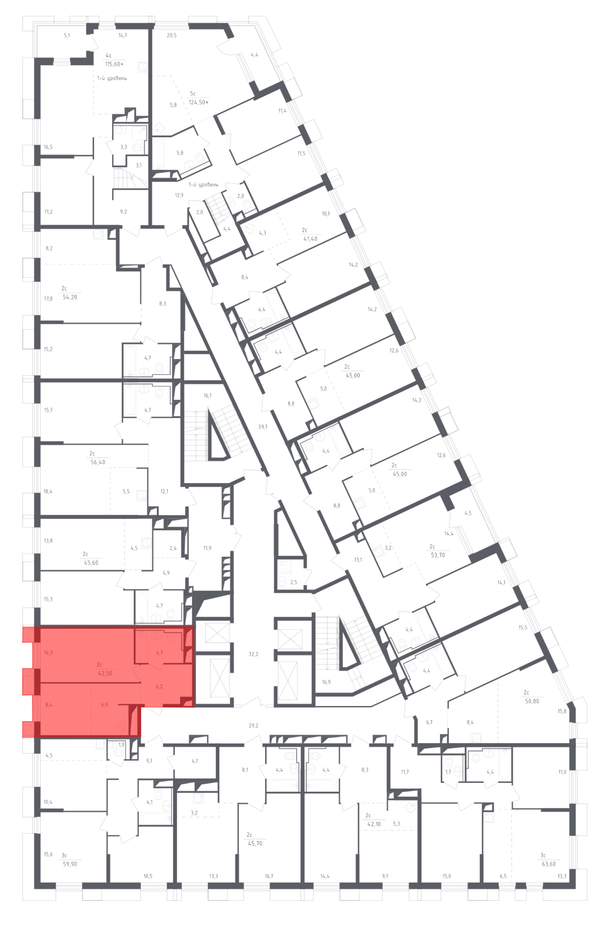 2-к.квартира, 42.5 м², 29 эт. в ЖК Спутник Корпус 19
