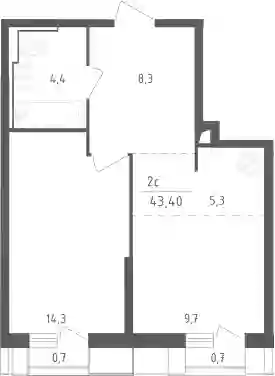 13 008 691 ₽2-к.квартира, 44.7 м², 2 эт.