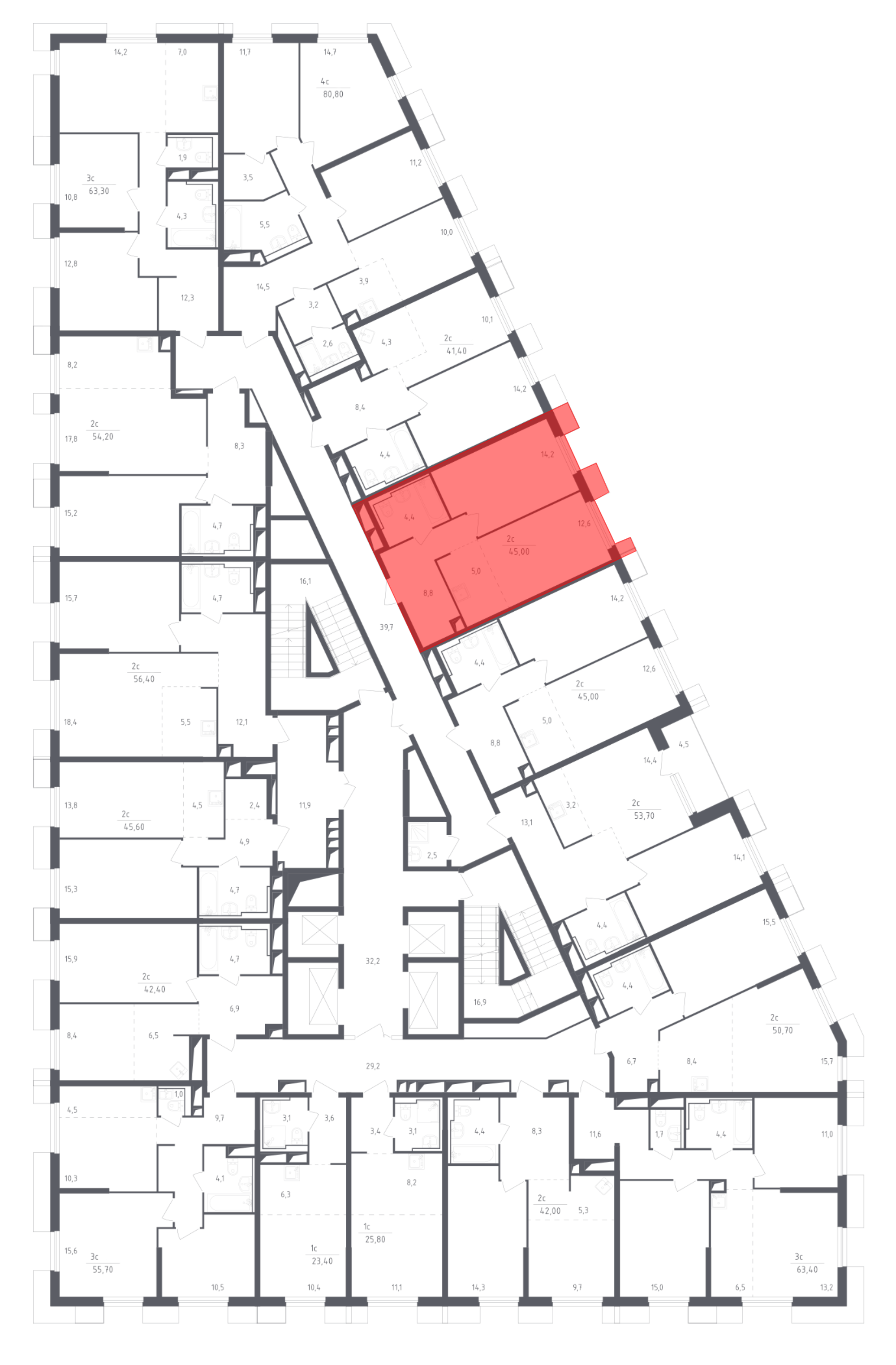 14 699 403 ₽2-к.квартира, 45.62 м², 12 эт.