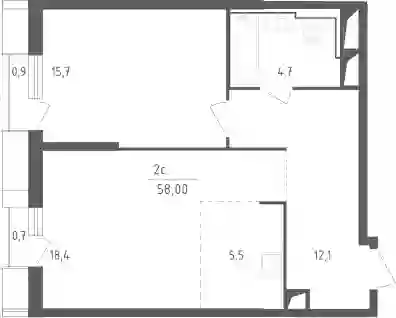 17 127 685 ₽2-к.квартира, 54.7 м², 18 эт.