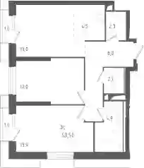 19 005 438 ₽3-к.квартира, 55.45 м², 2 эт.