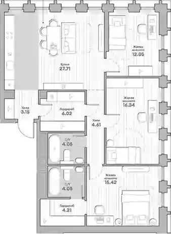 40 100 000 ₽3-к.квартира, 105.94 м², 27 эт.