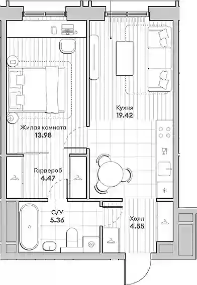 1-к.квартира, 47.78 м², 28 эт. в ЖК Среда на Кутузовском Корпус 5