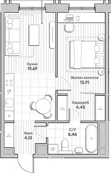 В жилом комплексе представлен широкий выбор планировок: от компактных студий до просторных 4-комнатных квартир. Среди них есть варианты с рабочими кабинетами, детскими, мастер-спальнями и несколькими ванными комнатами. Есть квартиры с увеличенной высотой потолков на последних этажах и лоты с видами на несколько сторон света. Все квартиры сдаются с отделкой White box.