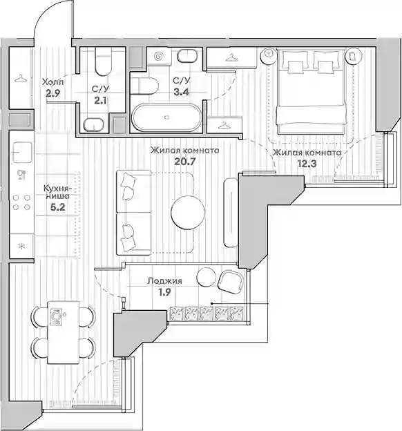 20 729 241 ₽2-к.квартира, 42.8 м², 21 эт.