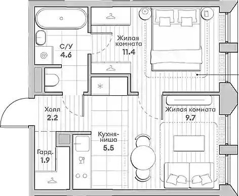 2-к.квартира, 35.3 м², 10 эт. в ЖК Среда на Лобачевского Корпус 5.2