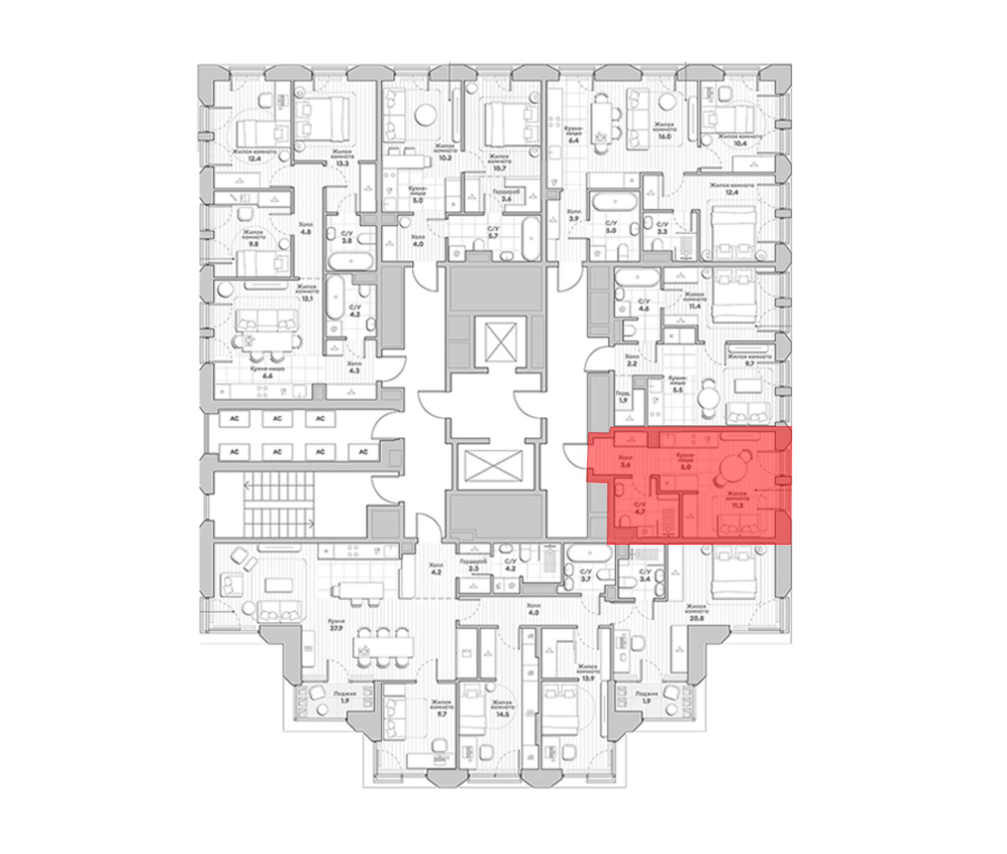 Квартирография жилого комплекса предлагает широкий выбор планировок: от уютных студий до просторных многокомнатных квартир с террасами, мастер-спальнями, несколькими ванными комнатами, гардеробными и постирочными. Из квартир с лоджиями, французскими балконами, открытыми террасами или угловым остеклением открываются панорамные виды на город. Все квартиры сдаются с отделкой White box. Высота потолков в квартирах составляет 2,92 метра на типовом этаже и 3,20 метра на верхних этажах.