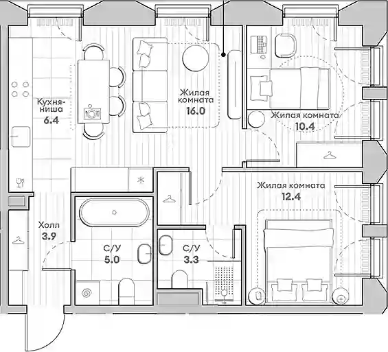 3-к.квартира, 57.4 м², 12 эт. в ЖК Среда на Лобачевского Корпус 5.3