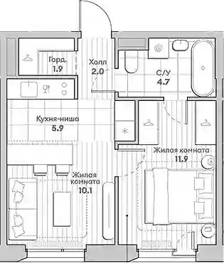 19 696 978 ₽1-к.квартира, 38.9 м², 10 эт.