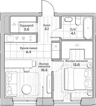 19 696 978 ₽1-к.квартира, 38.9 м², 10 эт.
