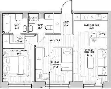 Квартирография жилого комплекса предлагает широкий выбор планировок: от уютных студий до просторных многокомнатных квартир с террасами, мастер-спальнями, несколькими ванными комнатами, гардеробными и постирочными. Из квартир с лоджиями, французскими балконами, открытыми террасами или угловым остеклением открываются панорамные виды на город. Все квартиры сдаются с отделкой White box. Высота потолков в квартирах составляет 2,92 метра на типовом этаже и 3,20 метра на верхних этажах.