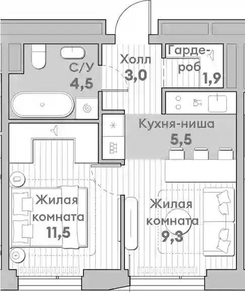 Квартирография жилого комплекса предлагает широкий выбор планировок: от уютных студий до просторных многокомнатных квартир с террасами, мастер-спальнями, несколькими ванными комнатами, гардеробными и постирочными. Из квартир с лоджиями, французскими балконами, открытыми террасами или угловым остеклением открываются панорамные виды на город. Все квартиры сдаются с отделкой White box. Высота потолков в квартирах составляет 2,92 метра на типовом этаже и 3,20 метра на верхних этажах.