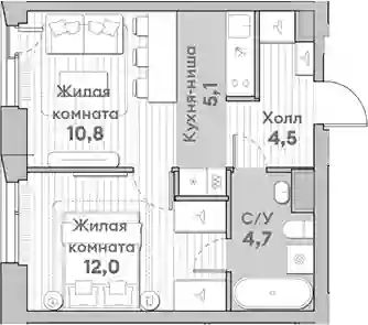 2-к.квартира, 37.1 м², 5 эт. в ЖК Среда на Лобачевского Корпус 5.5