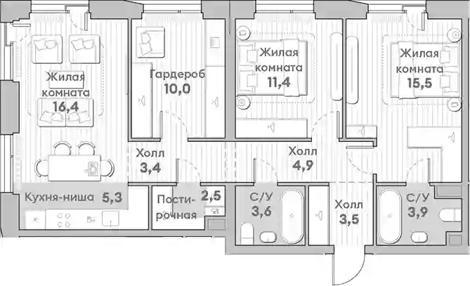 3-к.квартира, 80.4 м², 8 эт. в ЖК Среда на Лобачевского Корпус 5.5