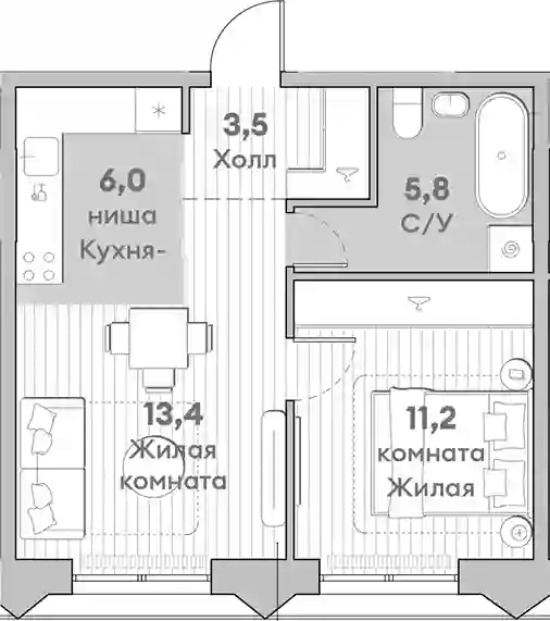 2-к.квартира, 39.9 м², 11 эт. в ЖК Среда на Лобачевского Корпус 5.7
