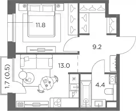 13 686 400 ₽1-к.квартира, 41.2 м², 3 эт.