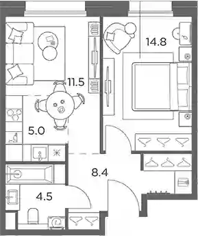 14 151 514 ₽2-к.квартира, 44.2 м², 5 эт.