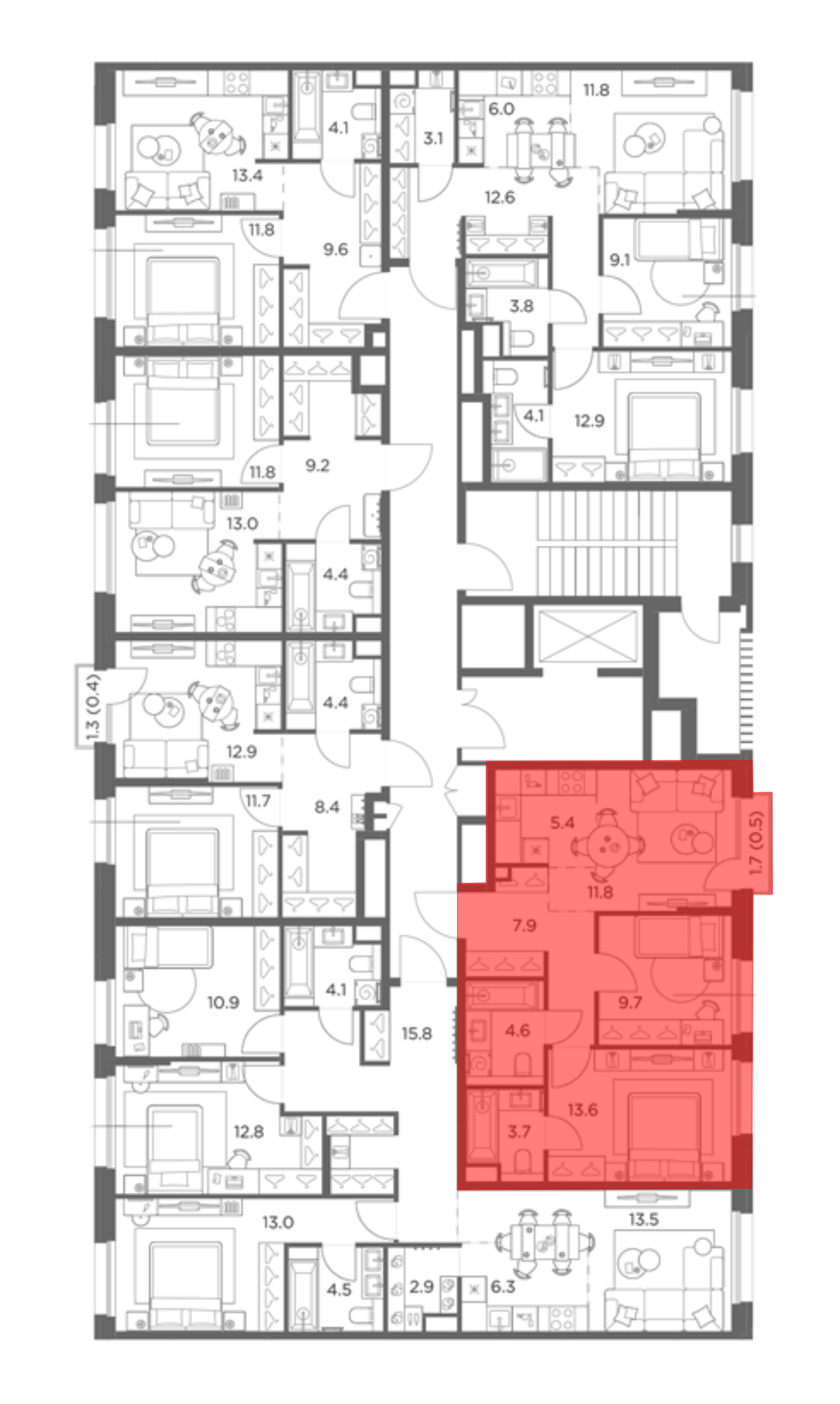 13 686 400 ₽1-к.квартира, 41.2 м², 3 эт.