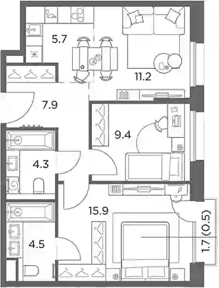 17 948 736 ₽3-к.квартира, 56.4 м², 5 эт.