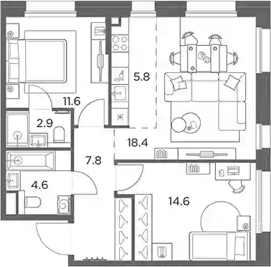 17 199 811 ₽3-к.квартира, 56.7 м², 5 эт.
