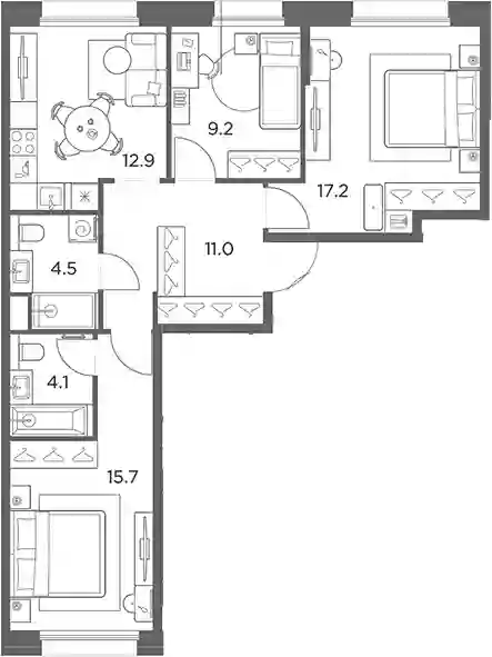 17 511 120 ₽3-к.квартира, 58.9 м², 3 эт.