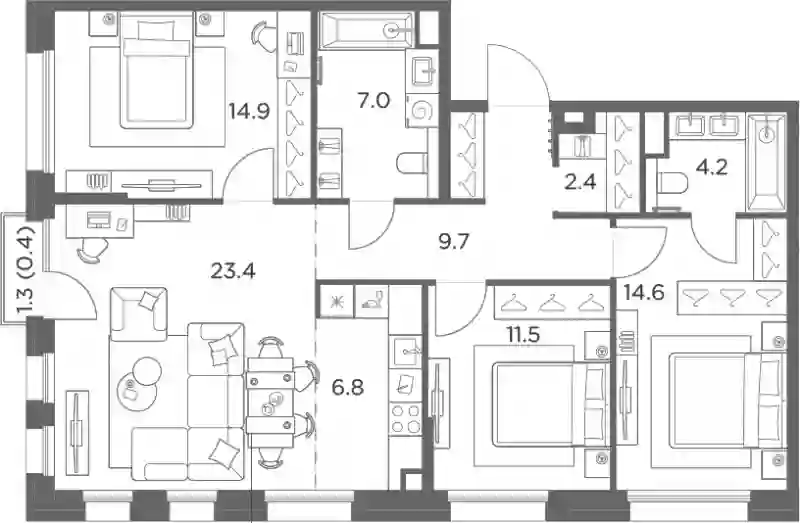 4-к.квартира, 94.5 м², 5 эт. в ЖК Станиславский Корпус 1.1