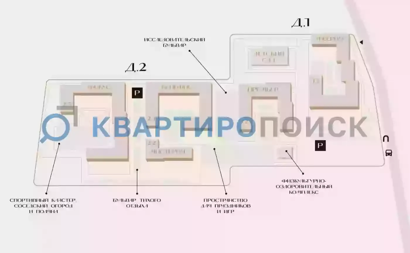 Инфраструктура комплекса включает 2 детских сада, школу, оздоровительный комплекс с фитнес-центром и спа, зеленые бульвары, игровые тропы и holiday-пространство. На первых этажах — минимаркеты, аптеки, кофейни и салоны красоты. Для владельцев автомобилей предусмотрен подземный паркинг с кладовыми и зонами для хранения велосипедов.
