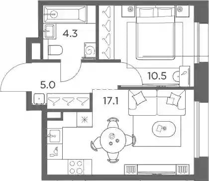 12 564 700 ₽1-к.квартира, 38.4 м², 4 эт.