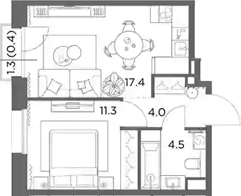 12 564 700 ₽1-к.квартира, 38.4 м², 4 эт.