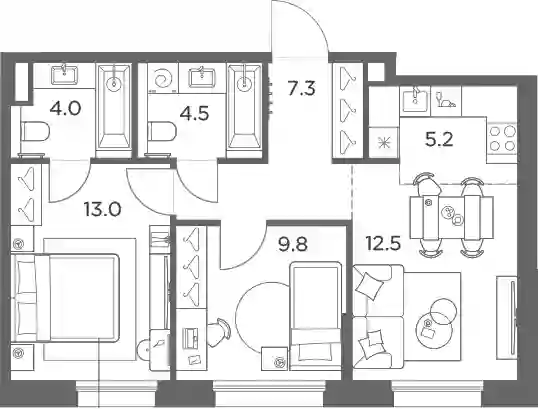 56.3 м2