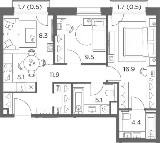 17 069 034 ₽3-к.квартира, 56.3 м², 3 эт.