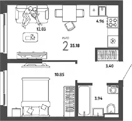 6 960 000 ₽1-к.квартира, 35.13 м², 3 эт.