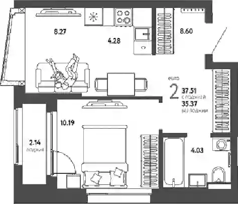 9 205 860 ₽1-к.квартира, 38.47 м², 10 эт.