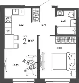 2-к.квартира, 36.67 м², 8 эт. в ЖК Страна.Парковая Корпус Перов