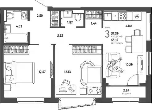 3-к.квартира, 55.15 м², 4 эт. в ЖК Страна.Парковая Корпус Перов