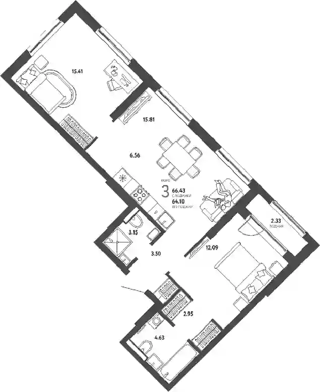 15 790 000 ₽3-к.квартира, 65.94 м², 7 эт.